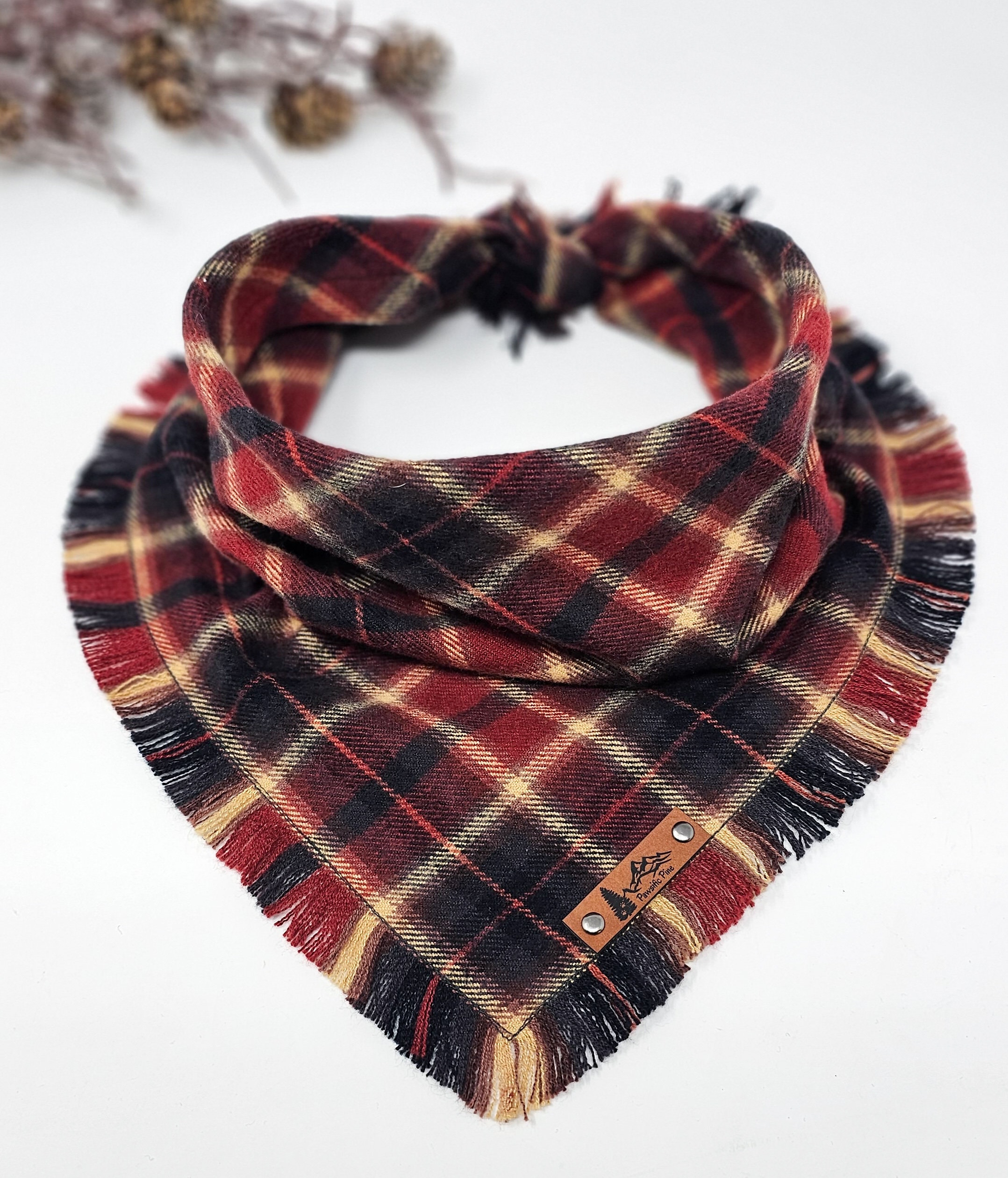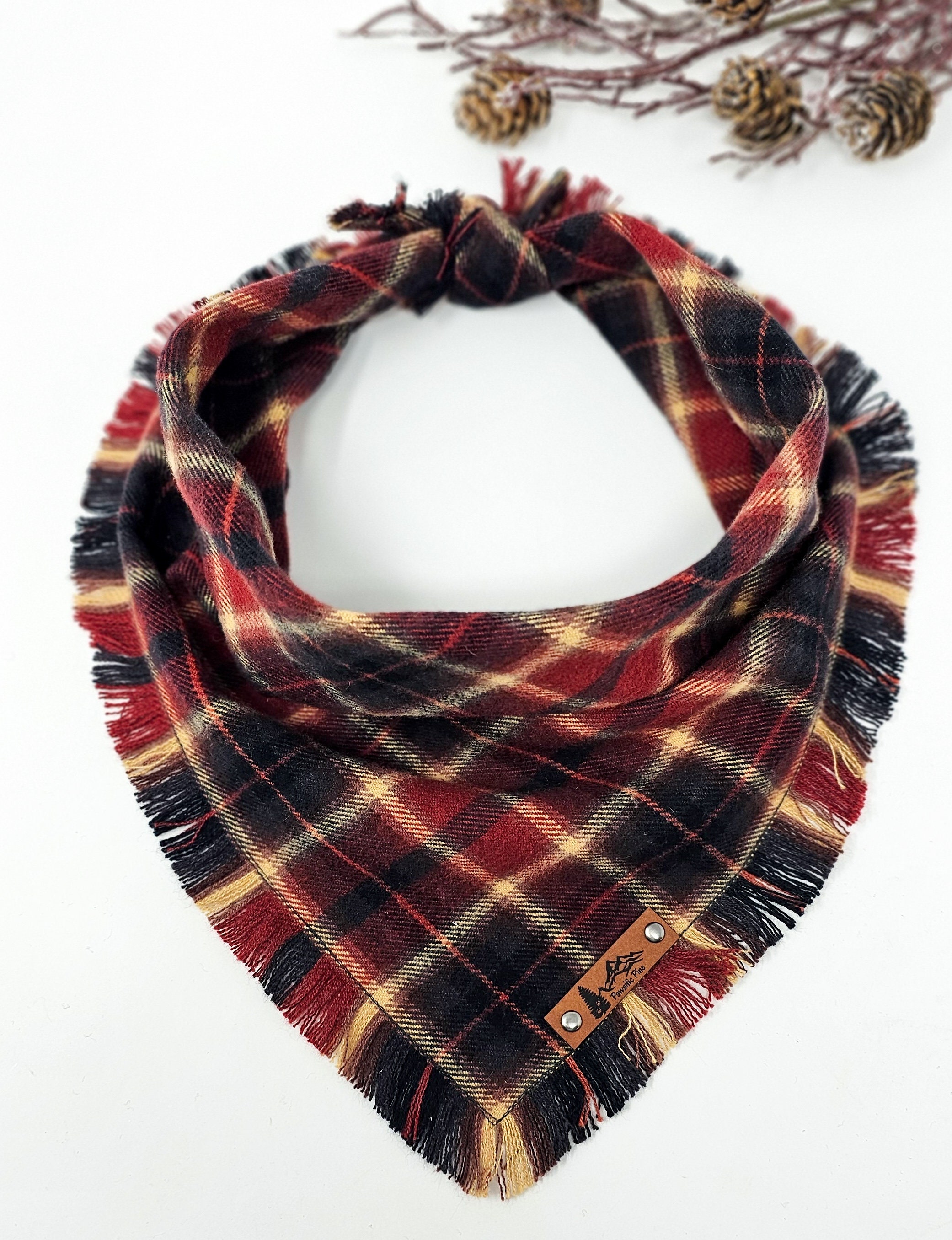 Introducing the stunning "Saddleridge" bandana, featuring a vibrant plaid design in a Brown and Black. This eye-catching bandana is skillfully crafted from yarn dyed cotton, giving it a unique and stylish appeal. The frayed edges on two sides add a touch of rustic charm, while the double stitching ensures exceptional durability.