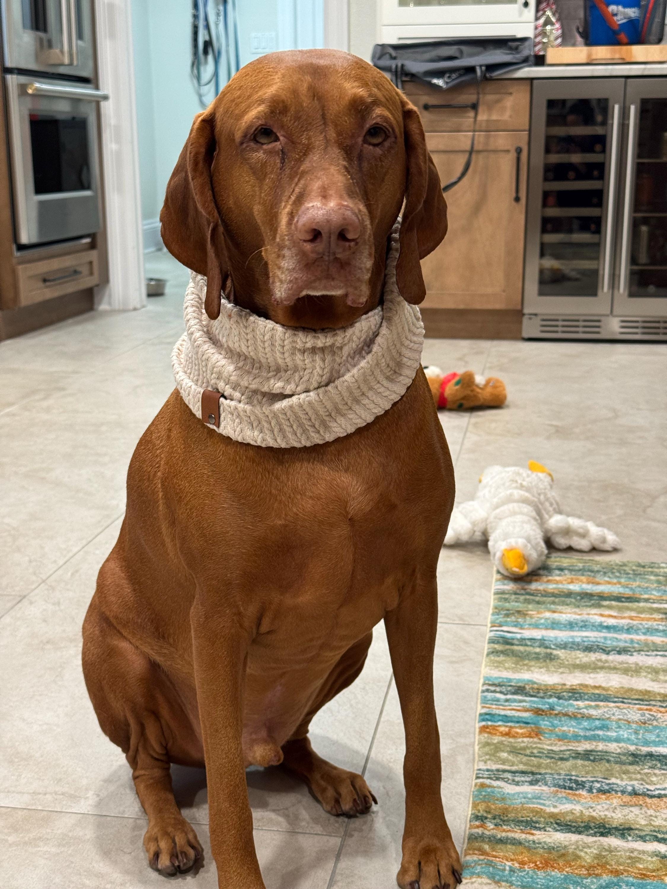Omg I can't even. Can you? Dogs in infinity scarves is my new love language. And this one is so well made. I bought one from another company, and it stretched out within a few wears. But this is a thick cable material and has kept its shape beautifully. I couldn't be happier with the aesthetic and quality.. and sweet seller to boot. 5-hundred stars.