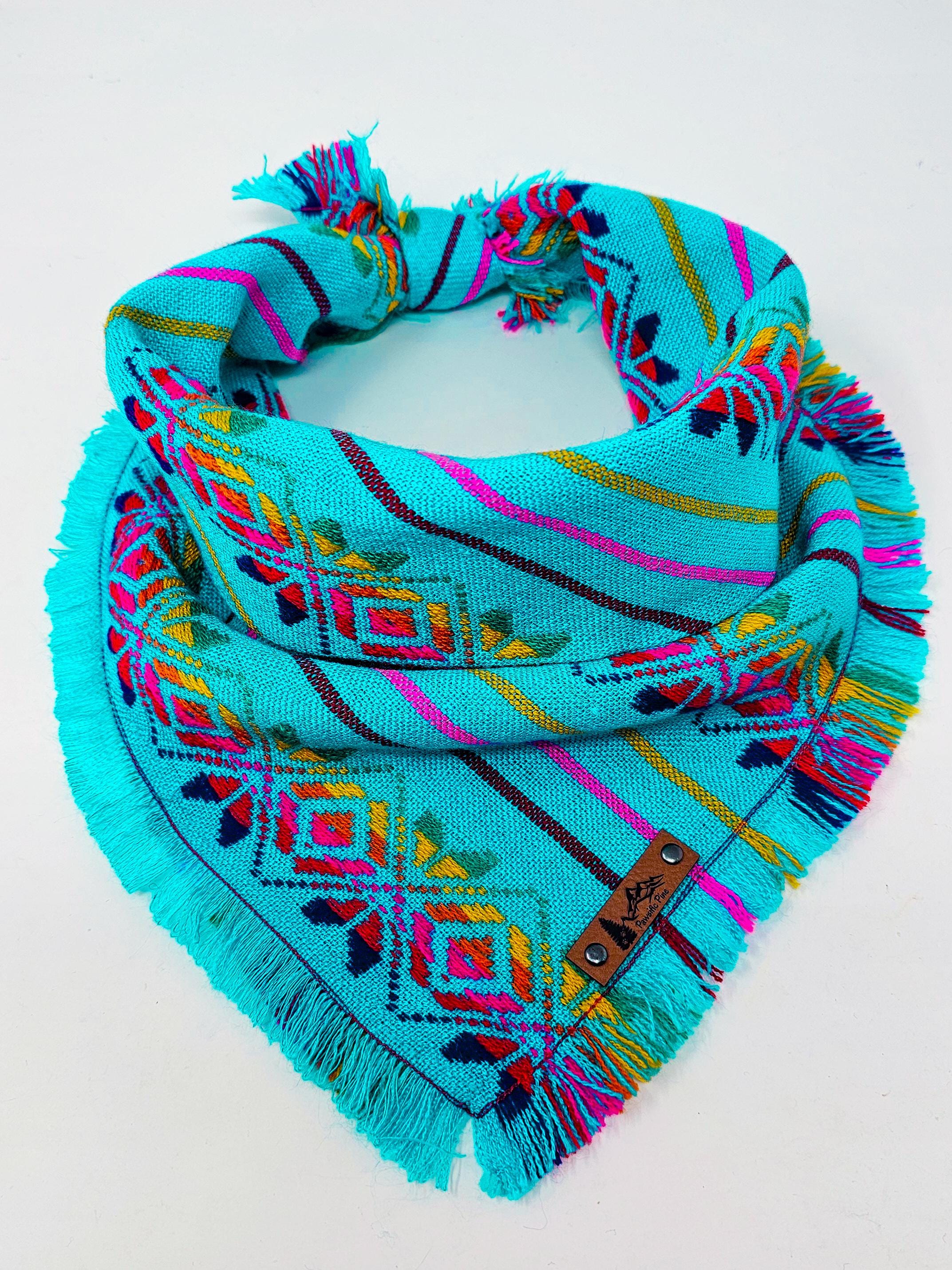 Introducing the stunning "Baja" bandana, featuring a beautiful bright blue design. This eye-catching bandana is skillfully crafted from 100% cotton Cambaya fabric. The frayed edges on all 4 sides add a touch of rustic charm, while the double stitching ensures exceptional durability.