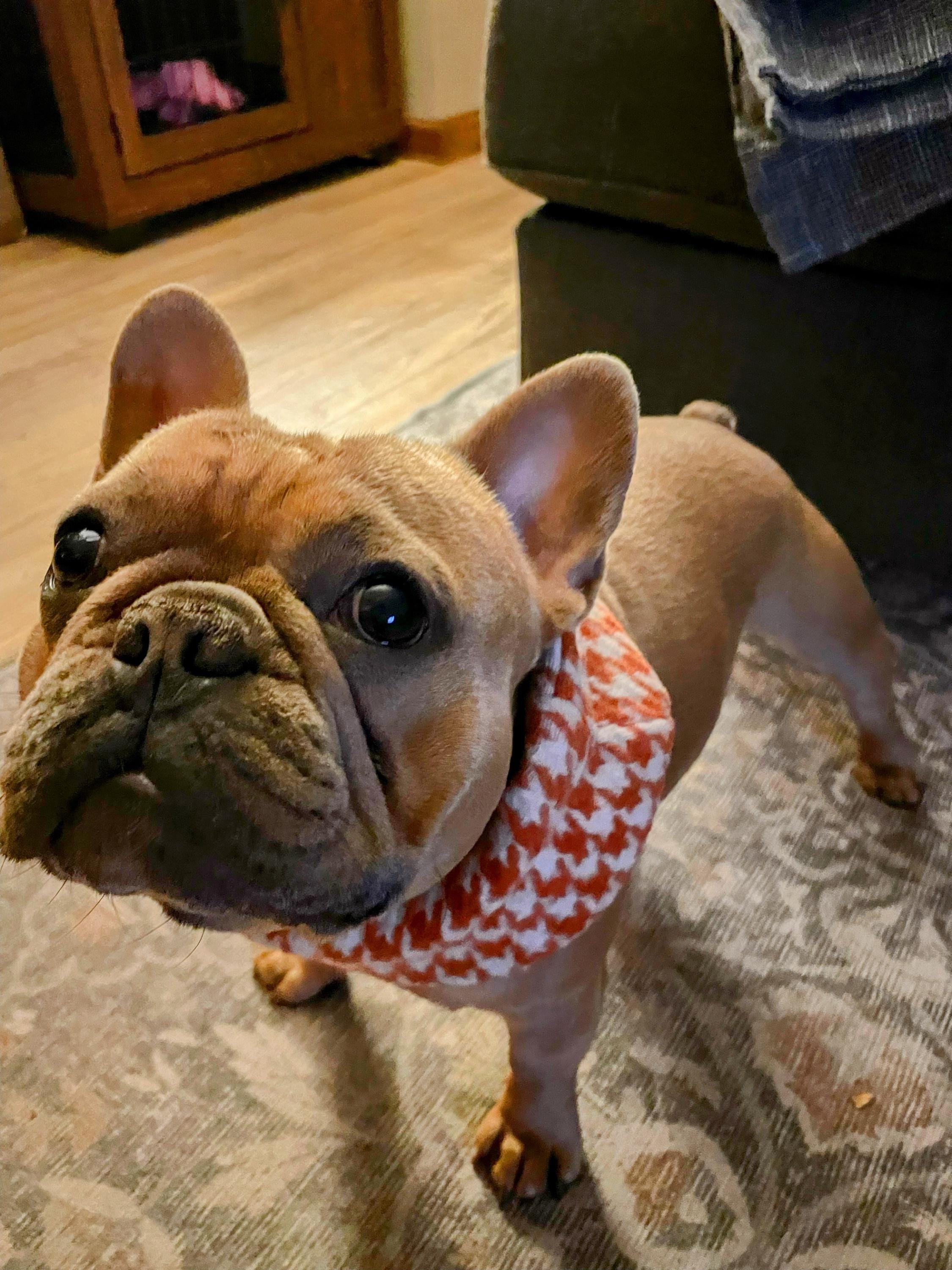 The size chart helped me order the correct size for my puppy and he looked so handsome in his new scarf!!
