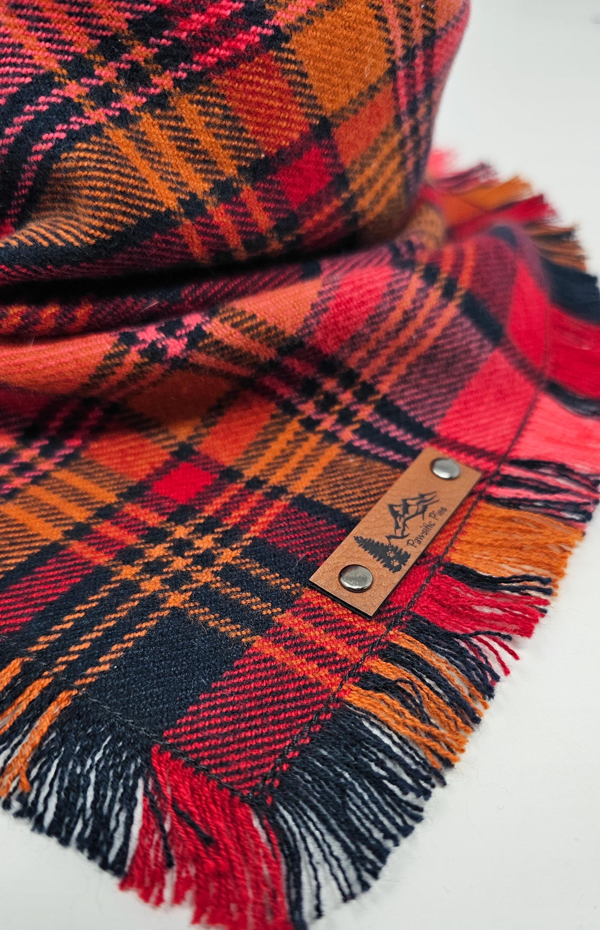Introducing the stunning "Gemini" bandana, featuring a beautiful Red plaid. This eye-catching bandana is skillfully crafted from yarn dyed cotton, giving it a unique and stylish appeal. The frayed edges on two sides add a touch of rustic charm, while the double stitching ensures exceptional durability.