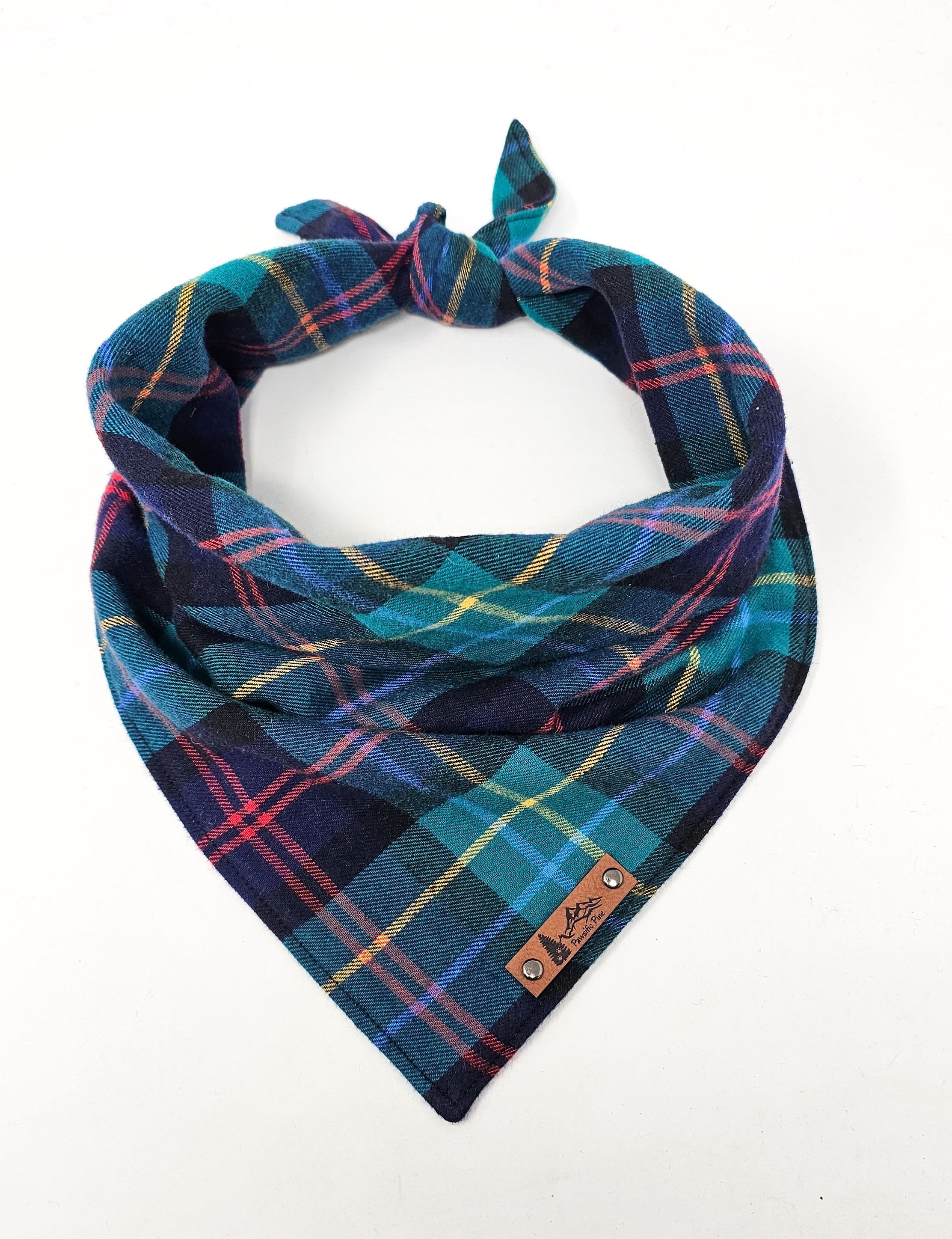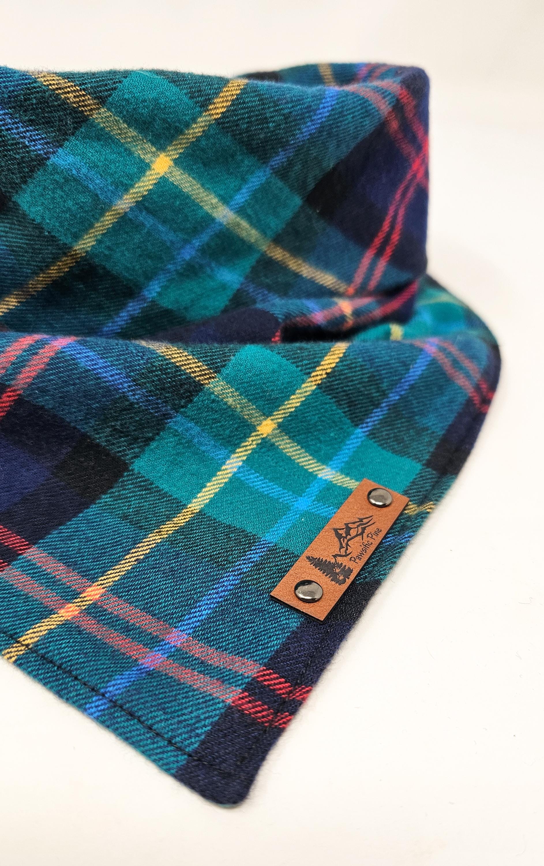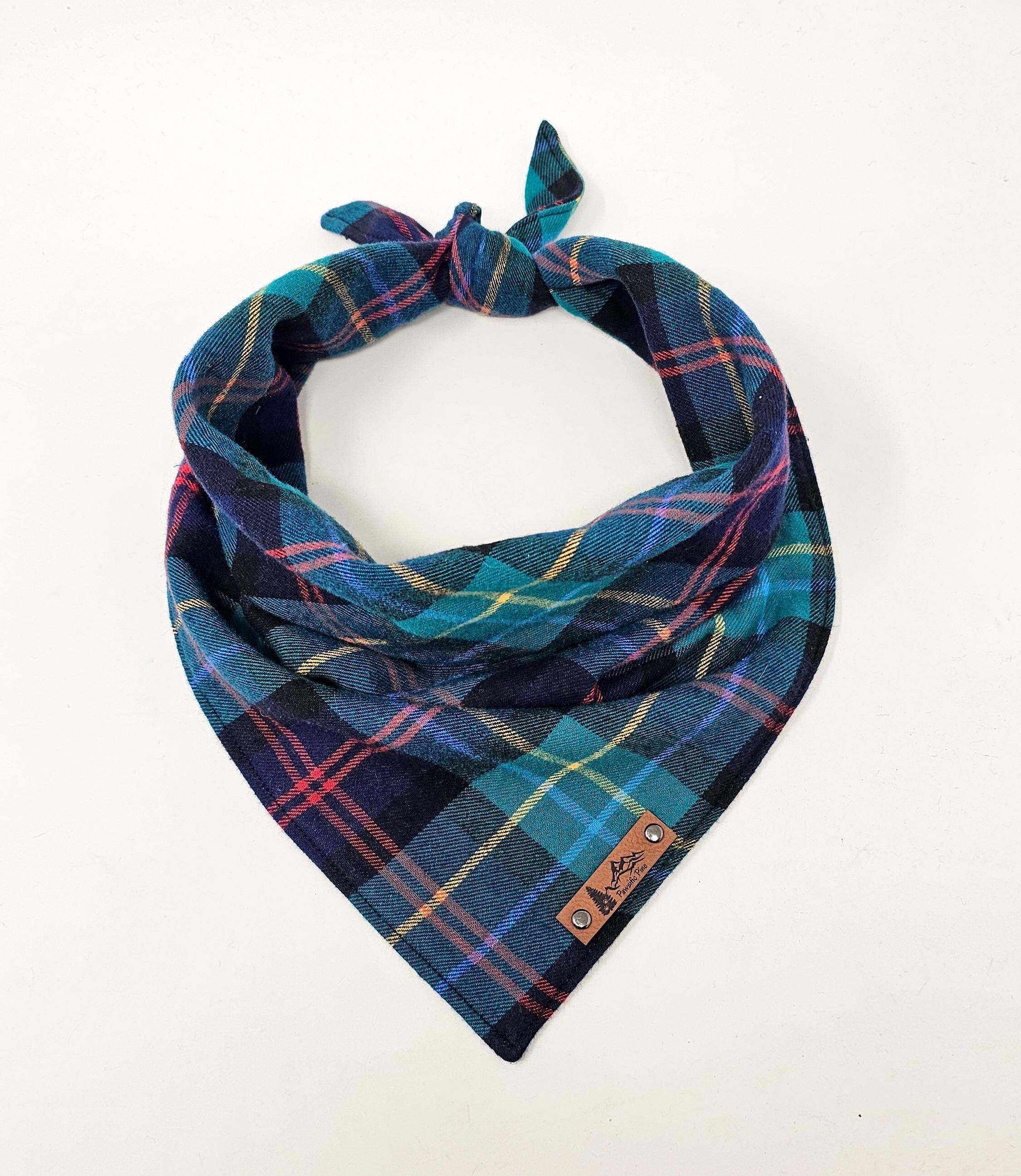 》The "La Boca" Dog bandana is a dark tealish green, red and black plaid pattern in 100% brushed cotton. This a folded and sewn triangle tie on style bandana that is meant to be be folded down for the best fit. Made from 100% preshrunk cotton. Hand washing in cool water and laying flat to dry is recommended. Iron as needed.