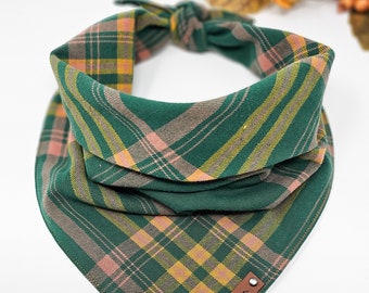 Dog Bandana "Fernvale" in Olive Green and Red plaid Frayed Edges cotton flannel dog neck wear Dog Neckwear Dog clothes